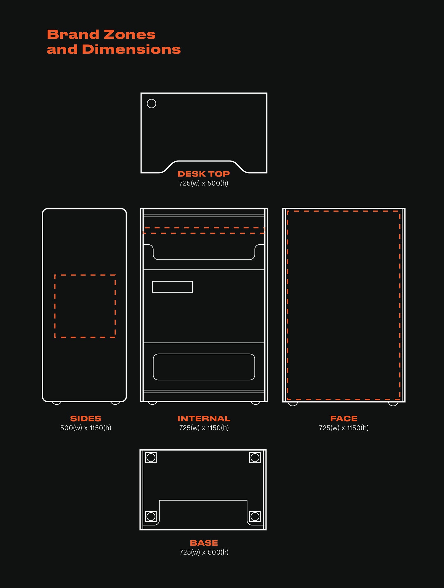 Our designers developed this mobile desk with multiple branding zones, making it a valuable tool for reinforcing your brand identity in any setting.